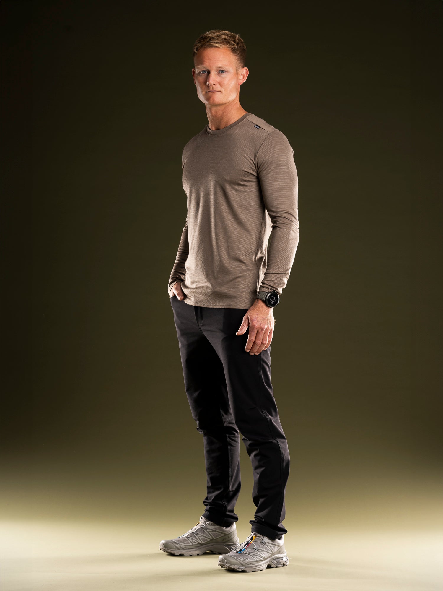 It's a woven, elastic, and stretchable fabric with a durable, hard-wearing exterior derived from workwear and a comfortably soft, slightly textured interior that ensures optimal comfort.